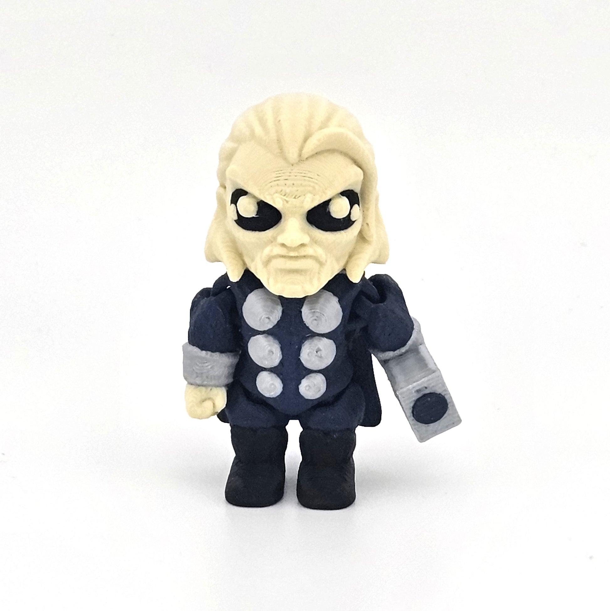 Power up your collection with a set of 3D printed, comic-inspired mini characters featuring fan favorites like a thunder-wielding warrior, a gamma-strong brute, a symbiotic anti-hero, and more. Each figure stands approximately 2 inches tall and is crafted with care on a high-resolution 3D printer for crisp detail in a compact size.