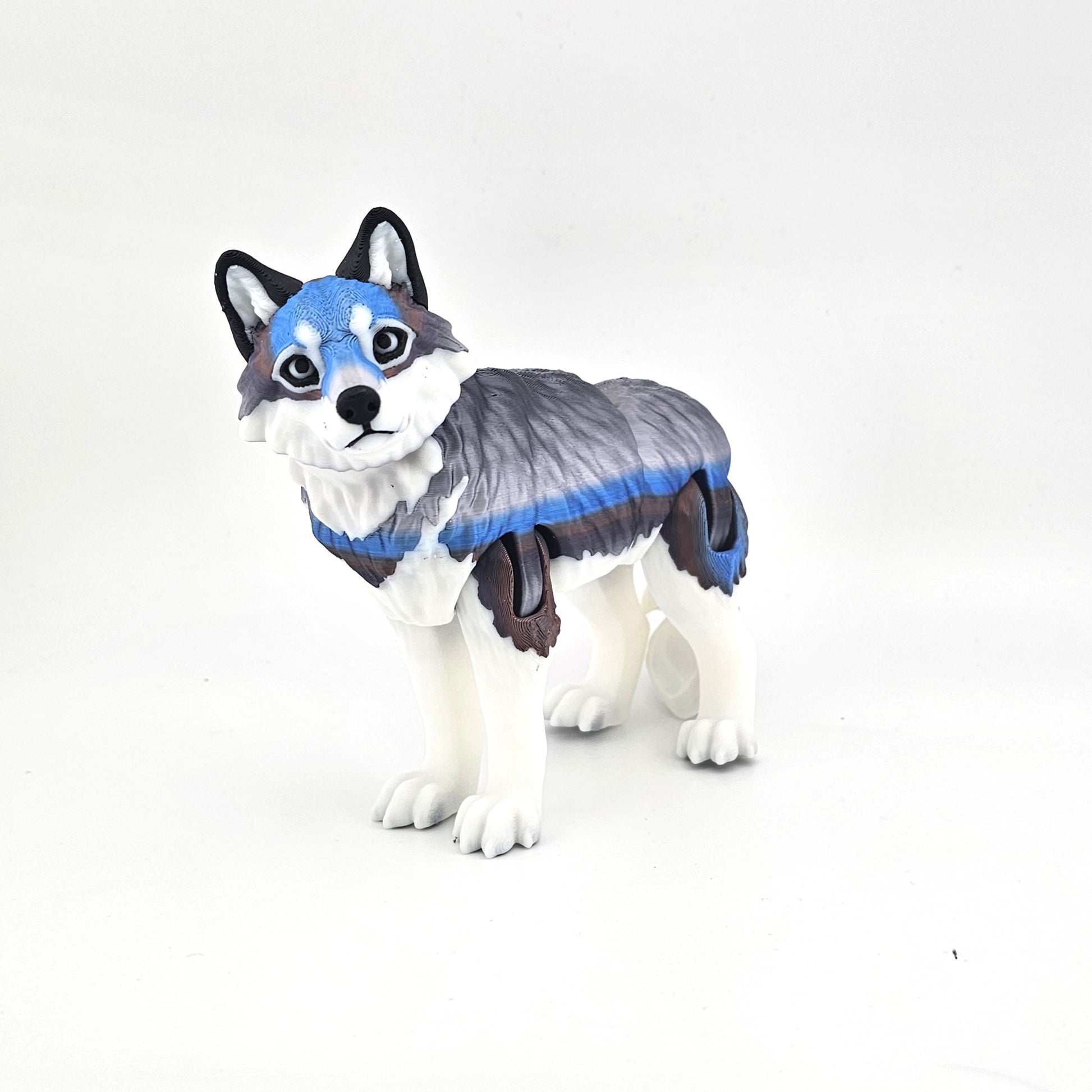 This artwork features wolves in striking rainbow and solid color fur designs. The 3D printing technique brings out the vividness of the colors, creating a captivating piece. Perfect for wolf enthusiasts who appreciate detailed art. Each detail is carefully crafted to highlight the beauty of wolves.
